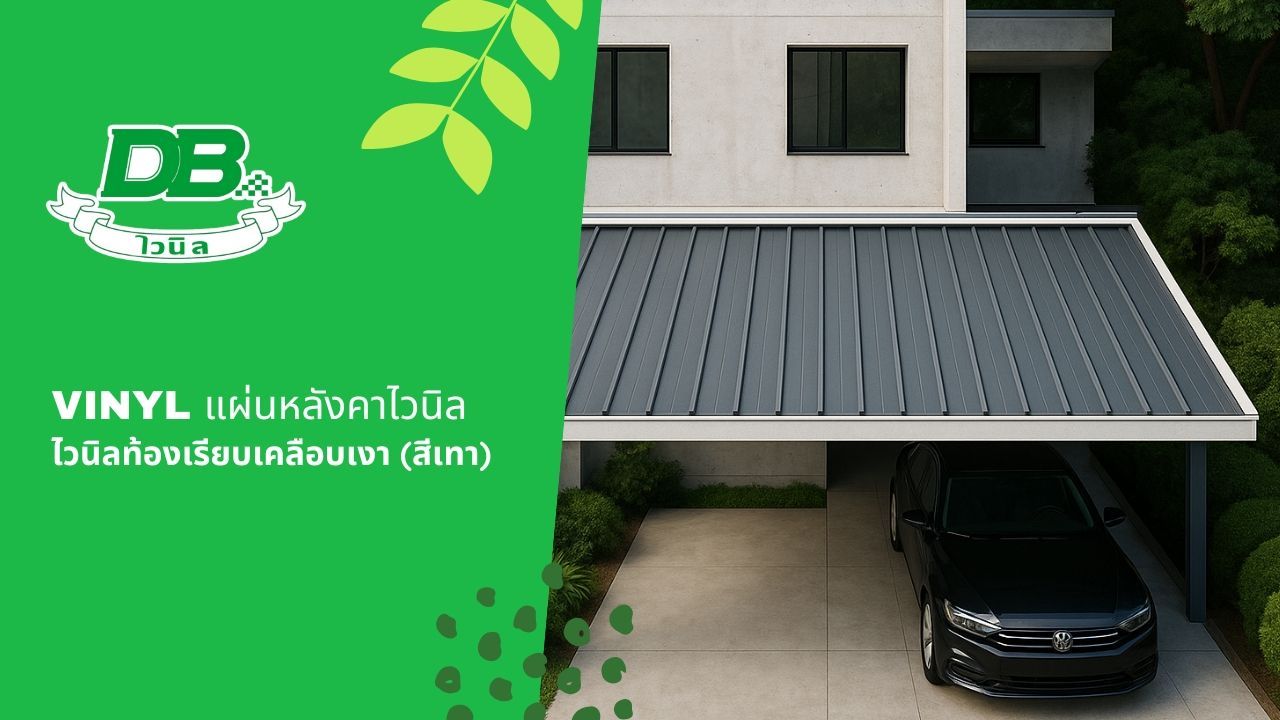 แผ่นกันสาด / หลังคาไวนิลท้องเรียบเคลือบเงา (สีเทา) ยี่ห้อDBข้อดีของแผ่นหลังคา DB ไวนิล สีเทา