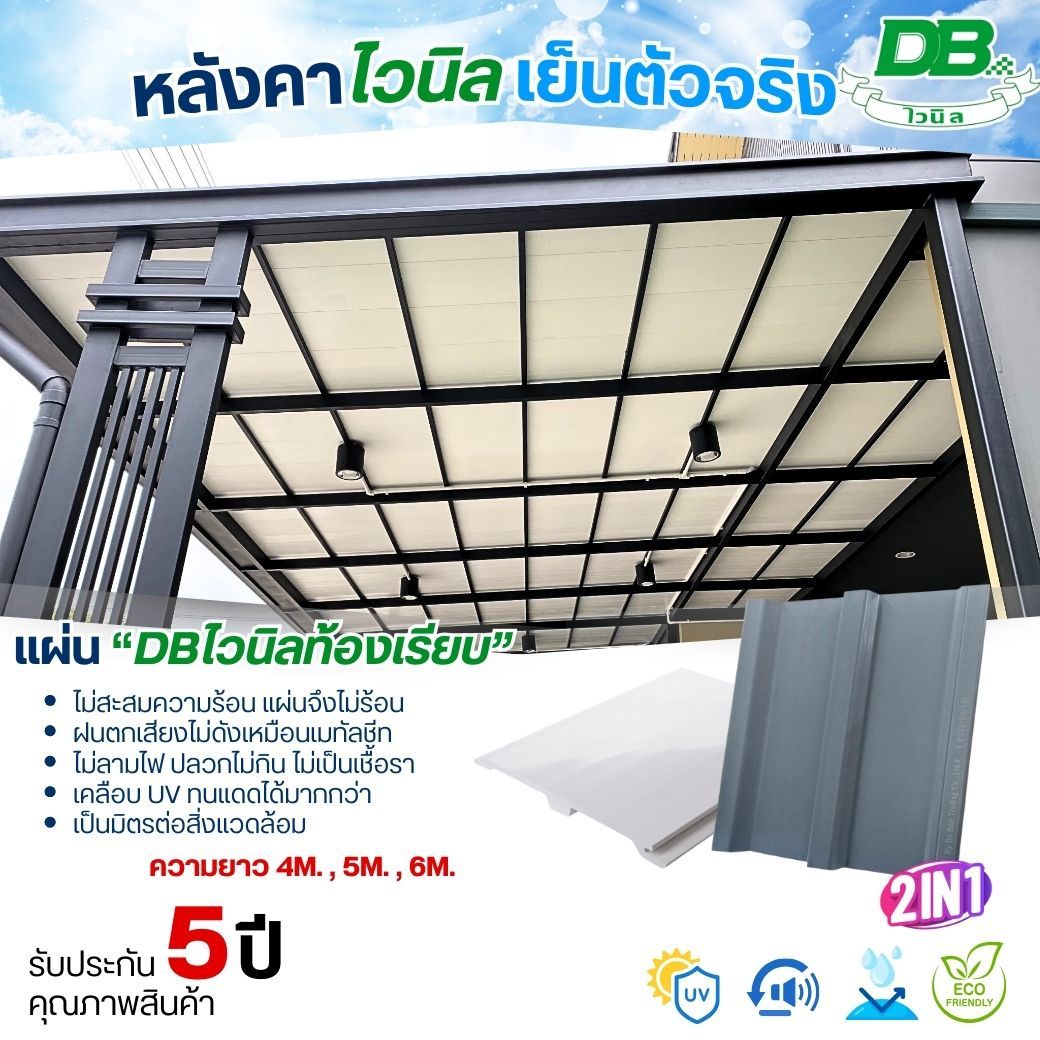 4.แผ่นหลังคาไวนิล ช่วยลดความร้อนป้องกันยูวี ทำให้เย็นสบาย ไม่ต้องติดฉนวนกันความร้อน